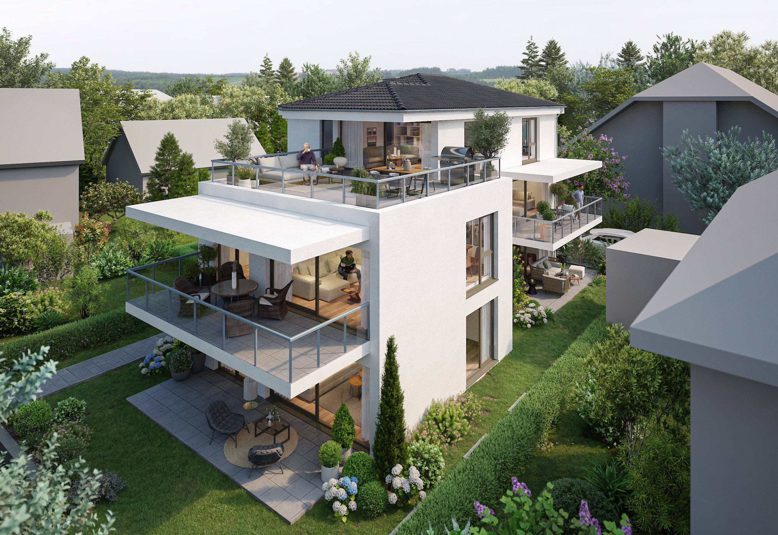 Wir haben die fotorealistischen Renderings und digitalen Exposés im eigenen Haus erstellt. Dieser kombinierte Ansatz ist deutlich kosteneffizienter als die Beauftragung einzelner Künstler und Designer.